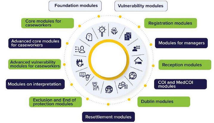 - Modules for asylum officials include core modules for case workers which provide a structured method for interviewing applicants, assessing their claims and deciding on whether they fit the criteria for international protection. There are also a wide range of modules dealing with areas of specialisation.