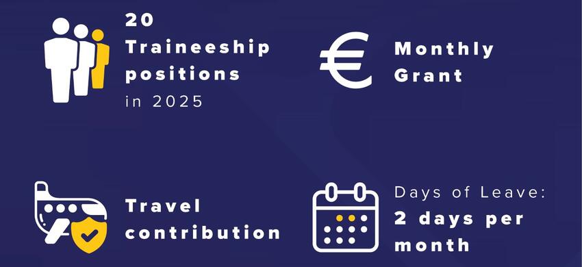 We offer a traineeship contract of 6 months, renewable for a maximum of another 6 months and a monthly traineeship grant of € 1500 and travel allowance at the beginning and at the end of the traineeship if trainees need to change their place of residence by more than 100 km. For the terms and conditions please consult the Decision of the Executive Director No 42/2023 on the EUAA traineeship programme.