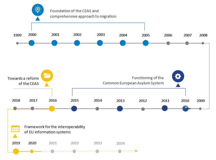 After the first phase (from 1999 to 2005), Member States reflected on the functioning of CEAS and implemented improvements to the five legislations that govern the minimum standards of the European asylum system:70