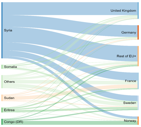 The overall number of persons resettled in Europe has been slowly increasing since 2017, but each year Syrians have been representing a smaller share of the total. This means that a wider range of citizenships are being resettled. For instance, in 2019 Norway resettled many nationals from Syria and also from the Democratic Republic of the Congo.