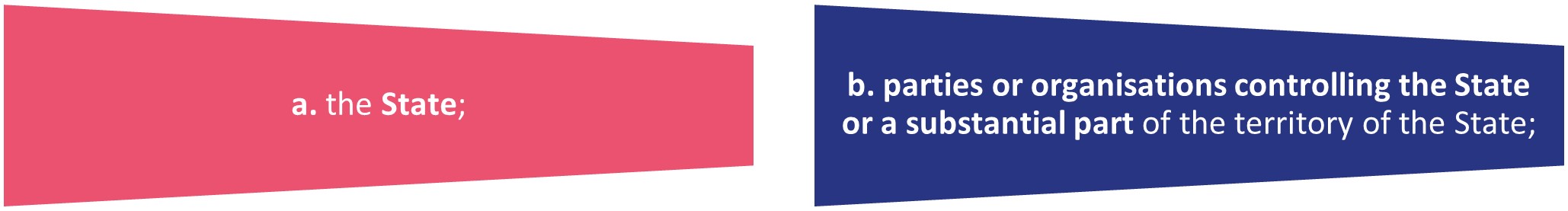 o Parties or organisations controlling the State or a substantial part of the territory of the State