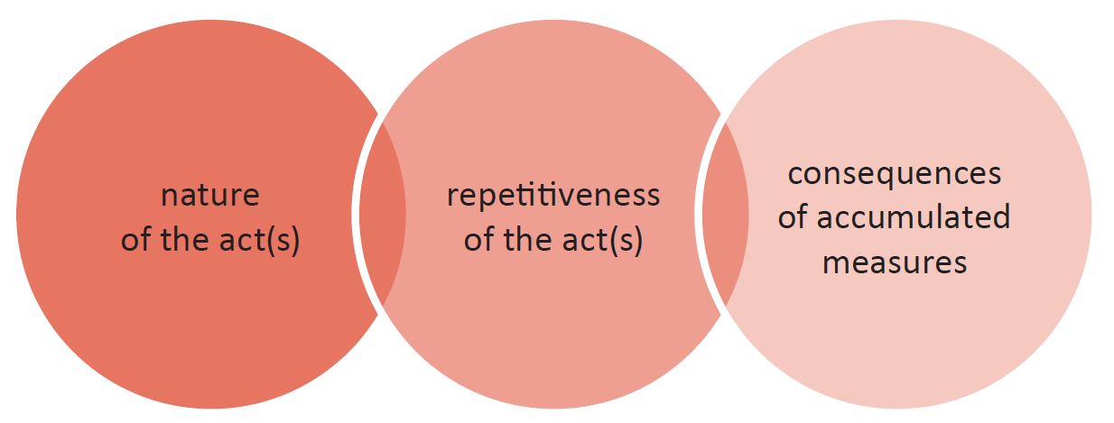 b. An accumulation of various measures, including violations of human rights, which is sufficiently severe as to affect an individual in a similar manner as mentioned in the first point |